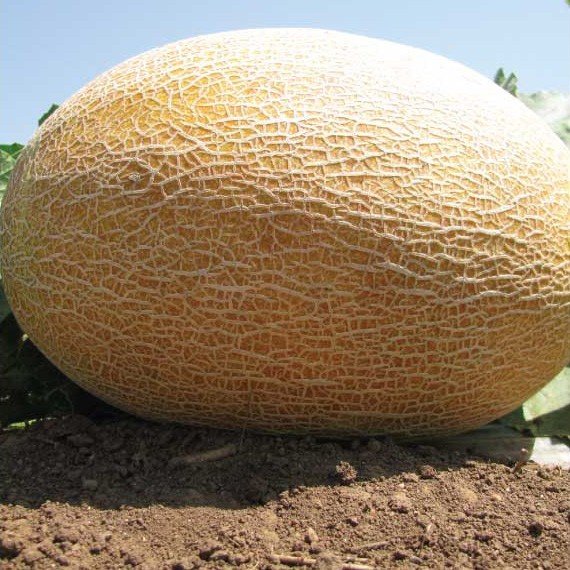Плоди овальні, з яскравим сітчастим малюнком на шкірі. Маса плодів 1,8-2 кг. М'якоть соковита, солодка, ароматна, білосніжна.