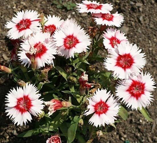Гвоздика китайська Карусель – красива однорічна рослина з яскравими великими квітами. Кущ компактний, висотою 20-25 см. Цвітіння рясне, раннє. Можна використовувати як горшечне. Селекція китайської гвоздики спрямована на отримання низькорослих, компактних сортів зі строкатими, великими, гофрованими квітками, з раннім і тривалим періодом цвітіння. У країнах з помірним кліматом китайську гвоздику вирощують як однорічник і широко використовують для масових посадок в міському озелененні. Представлені серії гвоздики китайської прикрасять будь сонячний квітник, рослини прекрасно підходять для вмісту в горщиках або контейнерах в композиціях з іншими літниками. Гібридні сорти гвоздики китайської висаджуються в травні-червні з грудкою землі з урахуванням доступу повітря між рослинами, щоб забезпечити необхідну аерацію під час сирої погоди – гвоздики не виносять перезволоження. Невибаглива, однаково добре розвивається і на яскравому сонці з притіненням в полуденний час. Їй необхідна аерація, при вмісті в контейнерах – добре провітрювані, продуваються місця. Влітку полив рясний, земляний кому пересихати не повинен. У посушливі дні корисні ранкове і вечірнє оприскування. Добре відгукується на підживлення 1 раз на 2 тижні з чергуванням органічних і мінеральних добрив протягом усього вегетативного періоду. З гвоздик виходять ефектні бордюри, застосовують їх і для строкатих квітників, альпійських гірок. Вони можуть служити почвопокровними рослинами і замінювати газон, рости на підпірних стінках і між плитками доріжок, обрамляти ступені. Під час цвітіння всі гвоздики утворюють яскраві кольорові плями.