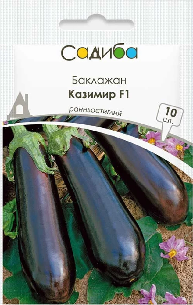 Баклажан Казимир F1 – ультраранній гібрид французької селекції, виведений фахівцями компанії Clause. Перший урожай можна зібрати вже через 55-60 днів після висадки розсади. Призначений для вирощування в тепличних умовах, плівкових тунелях і у відкритому ґрунті. Рослина низькоросла, розлога, має рясне листя. Не скидає зав'язь навіть при різких змінах температури. Формує приблизно 25-30 плодів на одному кущі. Шипи на плодоніжці відсутні. Демонструє імунітет до вірусу мозаїки, сірої гнилі, не вражається колорадським жуком.