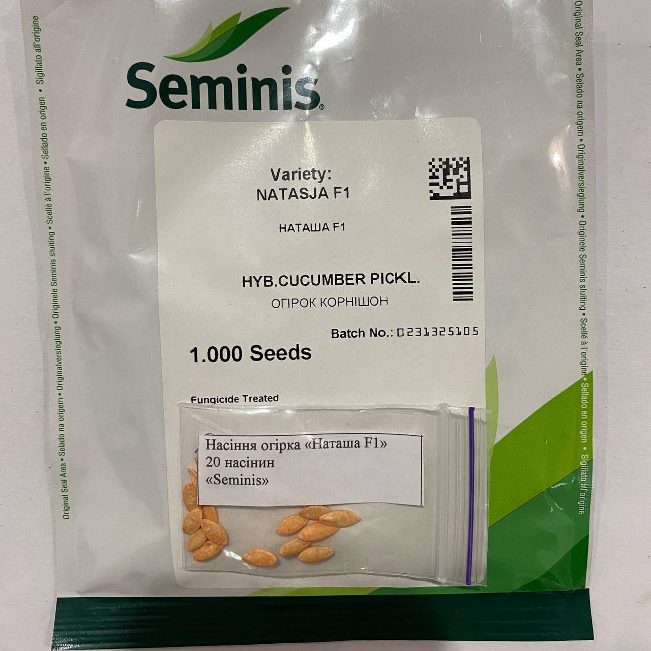 Огірок Наташа F1, 20 шт. (Власне фасування з оригінального упакування), (Seminis).
