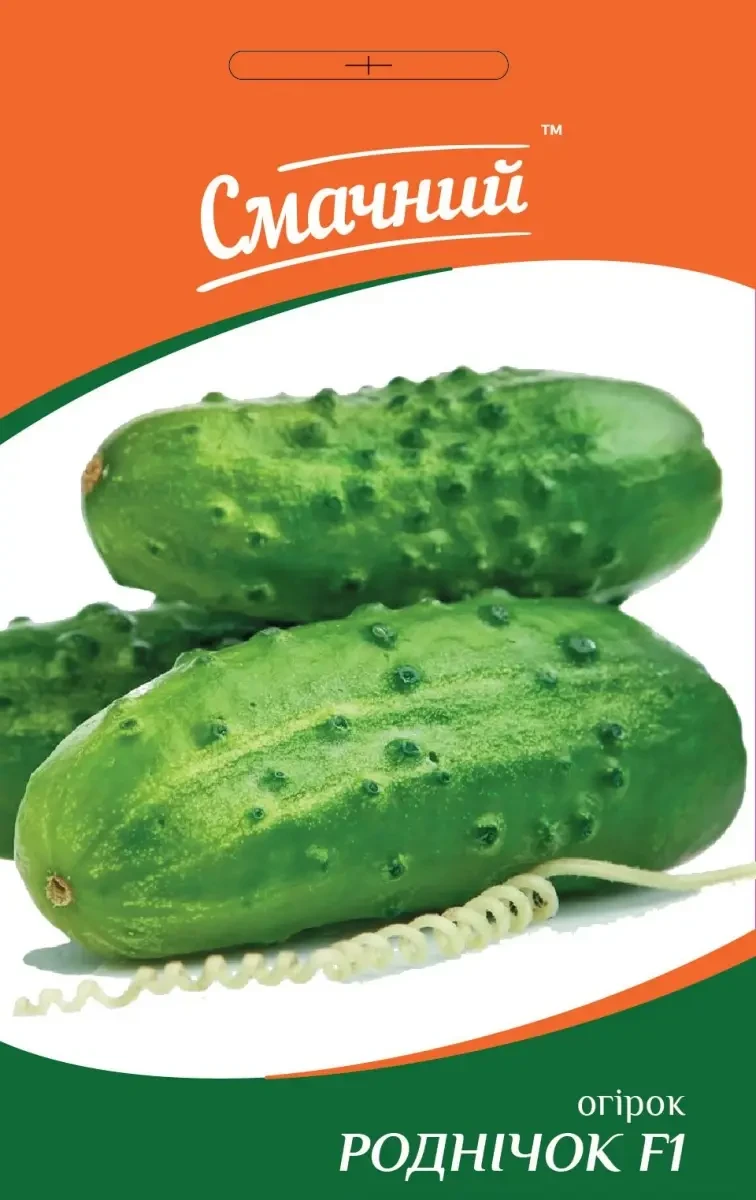 Роднічок F1 – середньостиглий бджолозапильний, високоврожайний гібрид для відкритого грунту і плівкових укриттів. Вегетаційний період від появи сходів до збору врожаю 50-55 днів. Кущ високорослий, довжина батогів до 3 м. Тип цвітіння жіночий. Плоди слабкобугорчасті, зелені зі світлими смугами до середини плода, без гіркоти, рівненькі, з маленькими чорними шипами, м'якоть хрустка. Розмір плодів 9-12см, діаметр – 4-6см. Середня маса 90-110 г. Загальна врожайність за сезон досягає 17-25кг з 1 квадратного метра під плівкою і 5-7кг з 1 квадратного метра для відкритого грунту. Перевагою сорту є стійкість до спеки, ряду хвороб (справжньої і несправжньої борошнистої роси, оливкової плямистості), тривалий період плодоношення, збереження товарних якостей (не жовтіють і не буріють), добре переносить транспортування, прекрасний у засоленні. Огірки можна вирощувати розсадним способом або посівом насіння у відкритий грунт. Насіння на розсаду висівають у квітні, в окремі стаканчики на глибину 1,5-2,0 см, при температурі 25 ° С. Коли з'являться сходи температуру знизьте до 15 ° С. Коли мине загроза повторних заморозків, розсаду висадіть в грунт. Висівати насіння огірків у відкритий грунт можна тільки тоді, коли він прогріється до 14-15 ° С. Посів: друга половина травня – початок червня. Глибина загортання насіння 2-3 см. Схема посадки: 70-90х30 см. Підходить для вирощування в сухих і жарких умовах. Догляд за рослинами полягає в прополці, розпушуванні і підгодівлі.