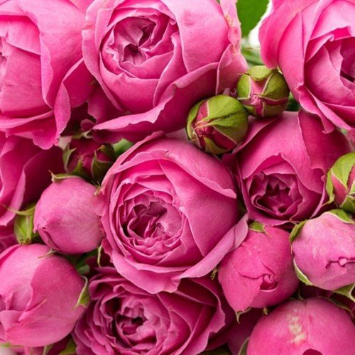 Форма квітки: чашоподібна, класична, діаметром 7–8 см, квіти зібрані у китиці.